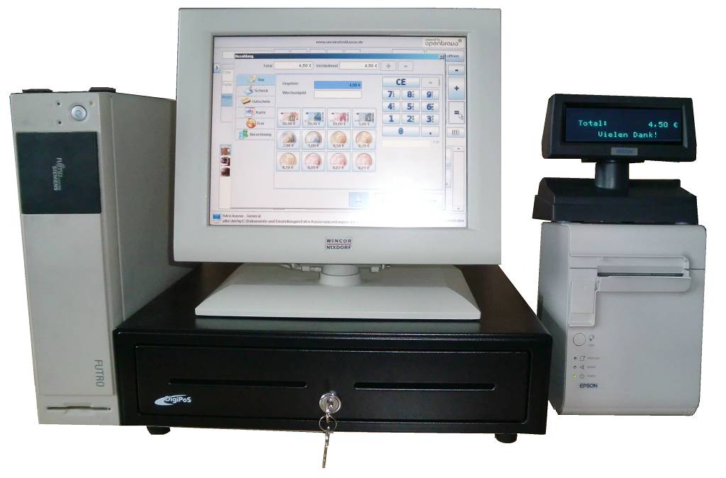 - Kassenlade (öffnet beim Bondruckvorgang automatisch)